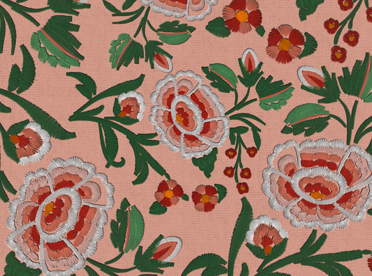 Há mais de uma década, ela explora a linguagem do design de estampas, desde que fundou seu próprio estúdio dedicado à criação de padrões e narrativas têxteis. Sua formação em moda e bordado se mistura à experimentação digital, dando origem a obras sensíveis e imaginativas que mesclam o real com o surreal.